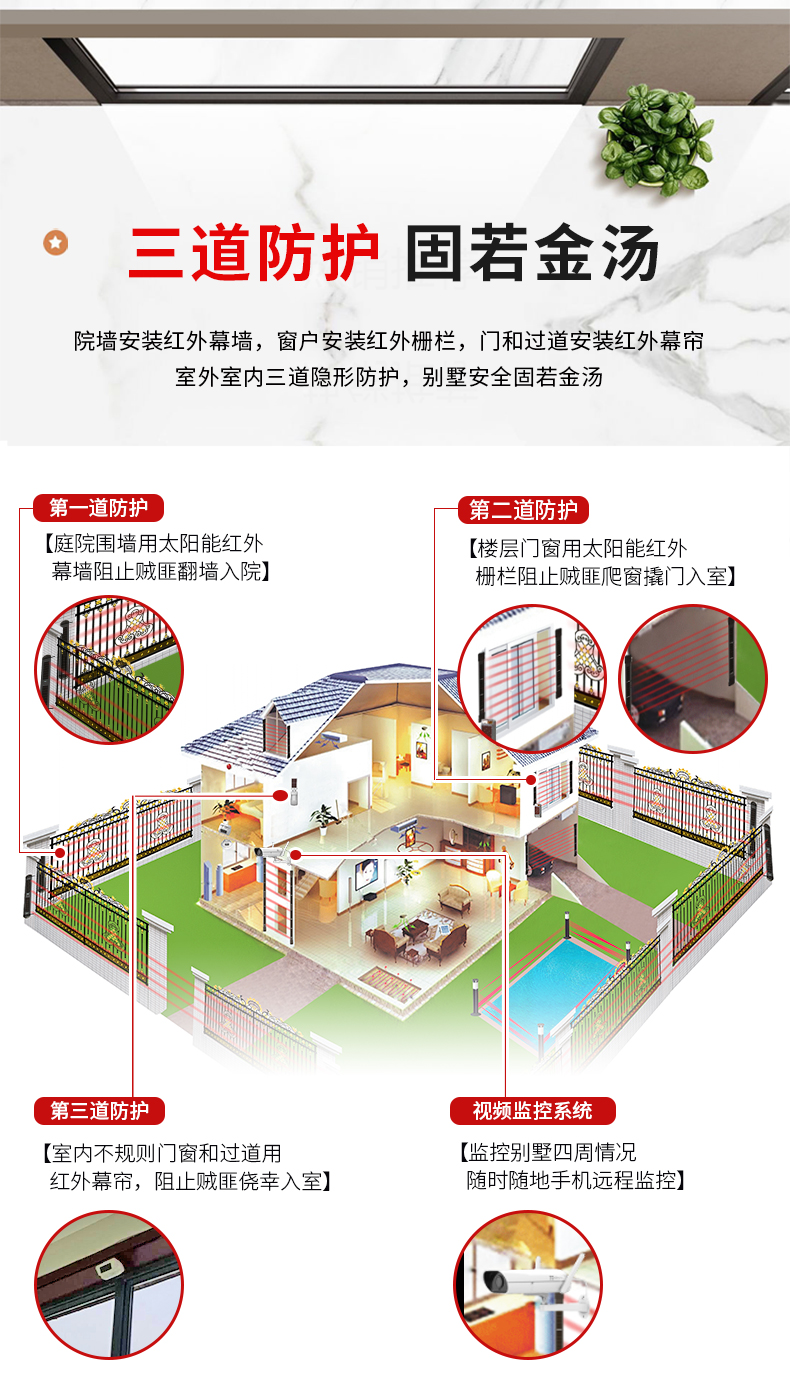 黑鐵磚安防 別墅安全系統(tǒng) 光能無(wú)線紅外對(duì)射 網(wǎng)上批發(fā) 工廠直銷 紅外對(duì)射式電子圍欄 周界報(bào)警系統(tǒng) 入侵系統(tǒng) 無(wú)線遠(yuǎn)程報(bào)警 專業(yè)對(duì)射生產(chǎn)廠家 適用于別墅、工廠、學(xué)校、炸藥庫(kù)、智慧工地、加油加氣站、部隊(duì)等任何有報(bào)警需求的場(chǎng)所
